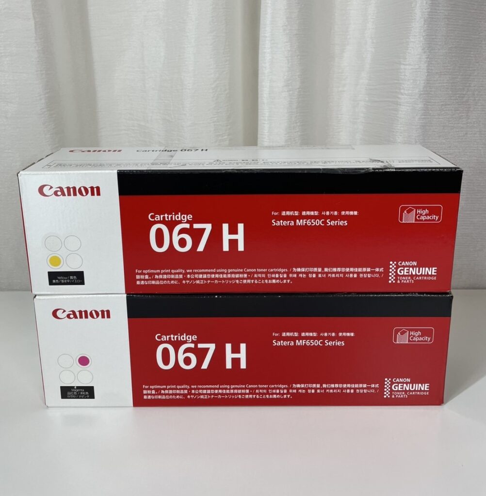 | 型番・本数 | CRG-067H MAG(マゼンタ) × 1箱 CRG-067H YEL(イエロー) × 1箱 |