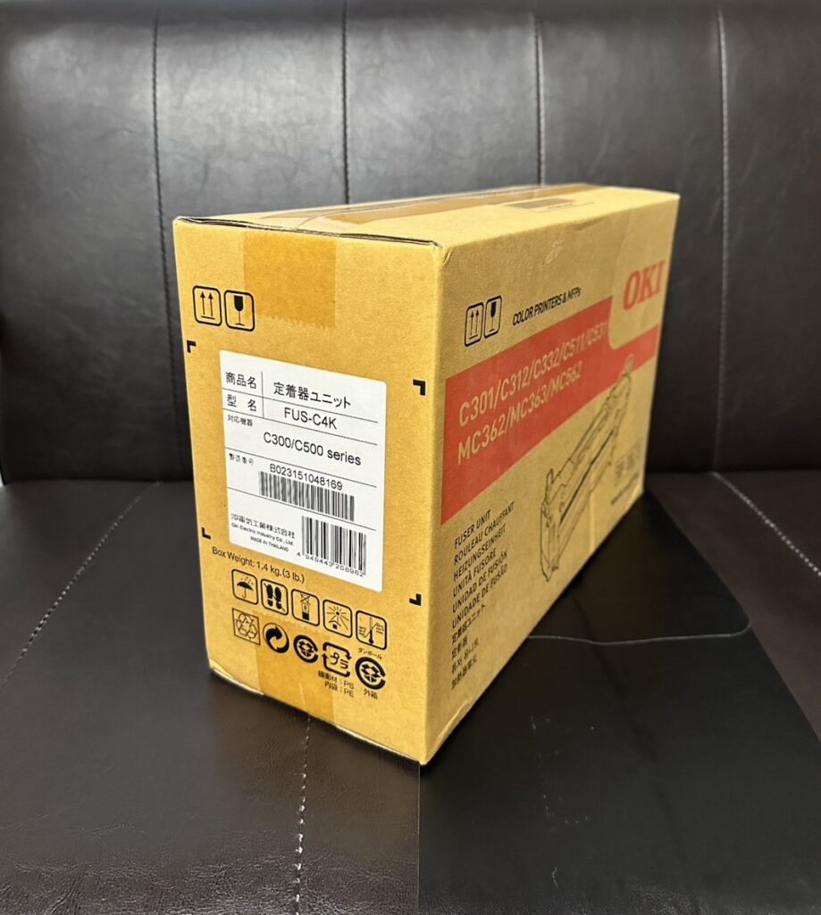 今回お買取りしたのは、OKIの主力ビジネスプリンターに対応した定着器ユニット**「FUS-C4K」**です。お客様からは「プリンターを新しいモデルに入れ替えた際、以前の機種用にストックしていた予備パーツが1つだけ余ってしまった」とのご事情でご相談をいただきました。