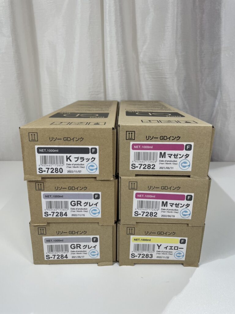 本日は、岡山県よりお送りいただいた、RISO純正**「GDインク」**計6箱の買取実績をご紹介します。